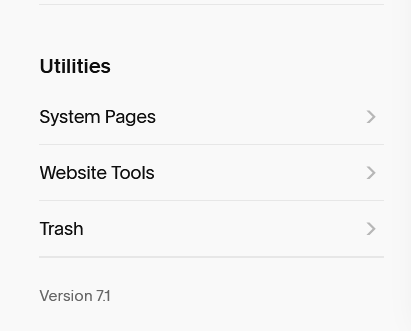 This menu allows you to see all the pages on your website. If you scroll down this new menu, past the pages of your website, you will also see a submenu called Utilities. This has 3 categories System Pages, Website Tools and Trash.